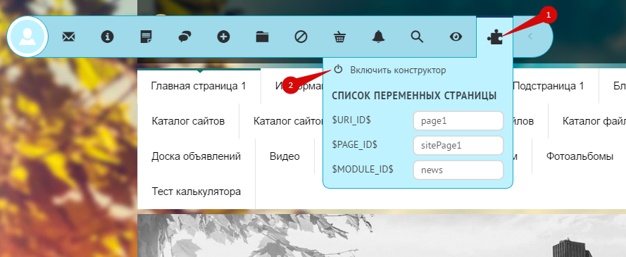 Конструктор включается в панели инструментов, которая доступна для администраторов сайта: