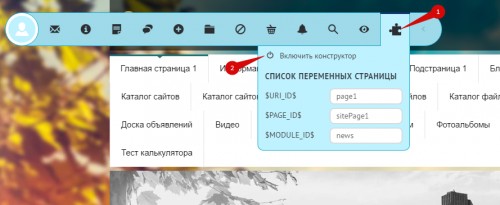 После включения конструктора, вид сайта изменится. Вы увидите кнопки управления содержимым сайта: