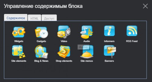 - Изменение содержимого блока. В блоке может быть размещен любой HTML-код или готовый виджет. Подробнее управление содержимом рассмотрено ниже.