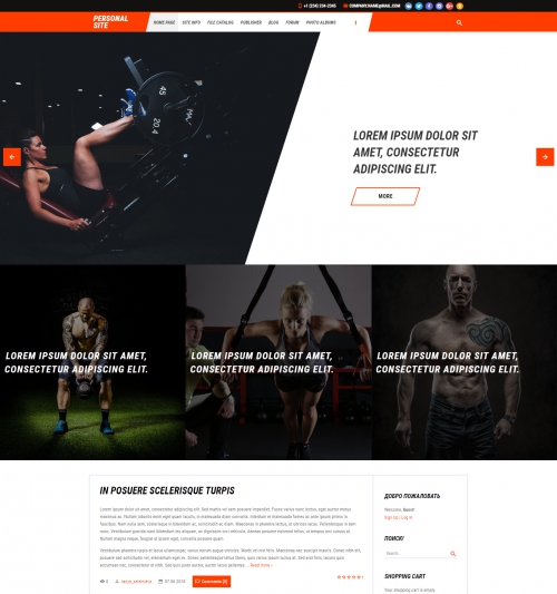 Промо-блок сайта состоит из слайдера и 3 информативных блоков, для их изменения перейдите в Панель управления → Дизайн → Редактор → Глобальные блоки → PROMO.
