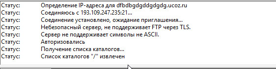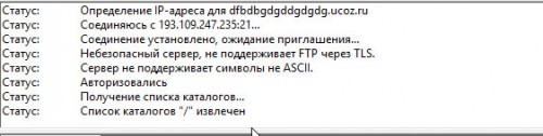 Если соединение установилось, в логе соединения последней надписью будет “Список каталогов извлечён”.