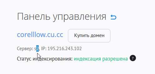 Номер и IP сервера можно узнать на главной странице панели управления.