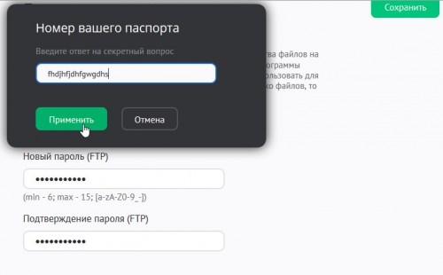 Подтвердите пароль и сохраните. При сохранении нужно будет ввести ответ на секретный вопрос.