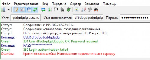 Если вам не удается подключиться, убедитесь сначала, что вы учли все условия и лимиты. Если вы всё сделали правильно, но подключение заканчивается ошибками, напишите в техническую поддержку: Панель управления - Помощь - Служба технической поддержки - Бесплатная (ответ до трех суток) или Платная/Бонусная (ответ в течение суток) - Опишите проблему, скопируйте и вставьте в сообщение лог соединения из программы FileZilla.