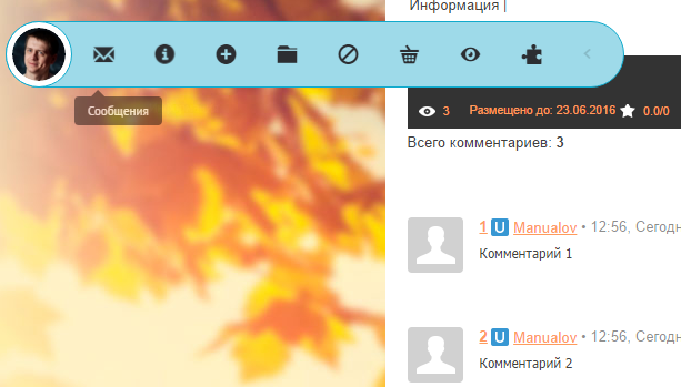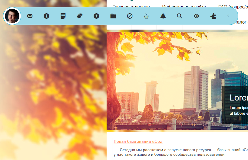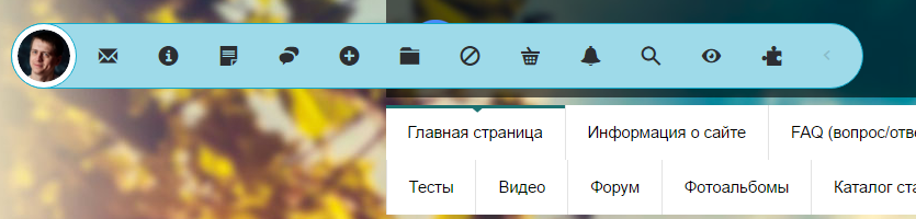 Панель инструментов показывается зарегистрированным пользователям и содержит инструменты, доступ к которым назначен в правах групп пользователей: