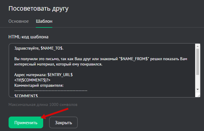 • максимальная длина текста шаблона 1000 символов