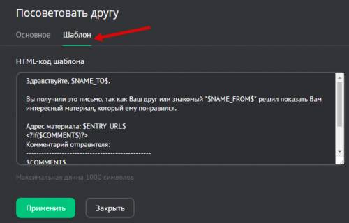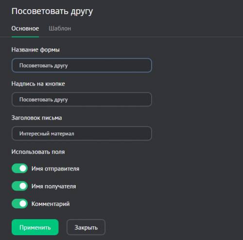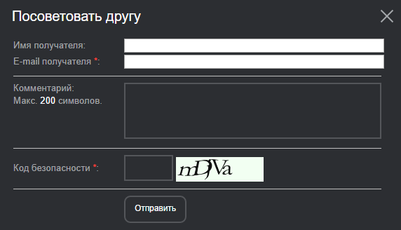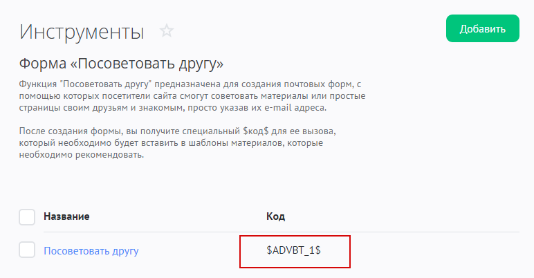 Инструмент «Посоветовать другу» предназначен для создания почтовых форм, с помощью которых посетители сайта смогут советовать материалы своим друзьям и знакомым, просто указав их email-адреса.