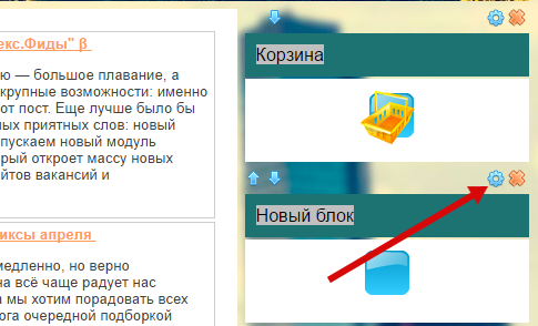 Когда блок появится на экране, перетащите его в боковую колонку, зажав левую клавишу мыши: