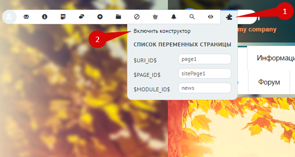 Теперь, когда у вас есть код, перейдите на сайт и выполните вход в учетную запись администратора. В панели инструментов включите конструктор: