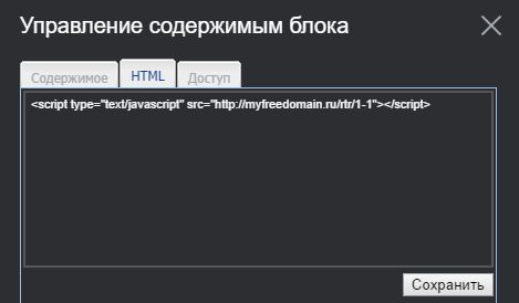 Перейдите на вкладку HTML и вставьте скопированный ранее код. Нажмите на кнопку «Сохранить»: