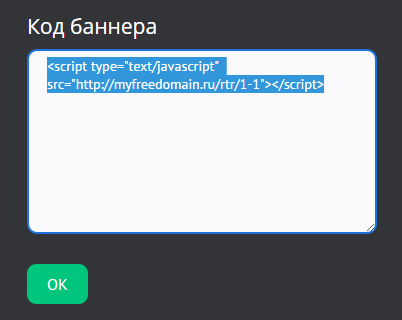 Далее скопируйте код баннера: