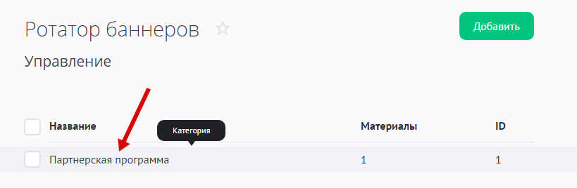 Вы можете разместить несколько баннеров (будут транслироваться по одному случайным образом). Для этого перейдите в список категорий баннеров и нажмите на название категории: