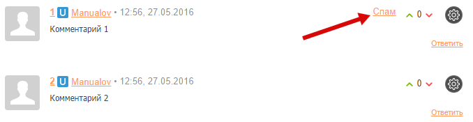 Администратор сайта может отмечать сообщения как «спам»/«не спам»: