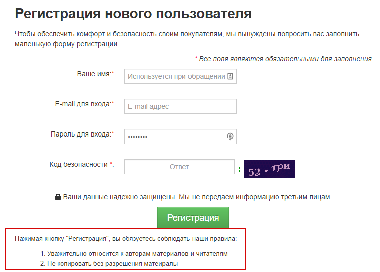 После этого под формой регистрации пользователей будут отображаться правила: