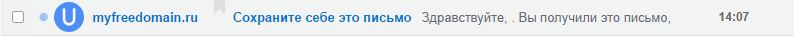 Так письмо будет выглядеть в списке сообщений почты: