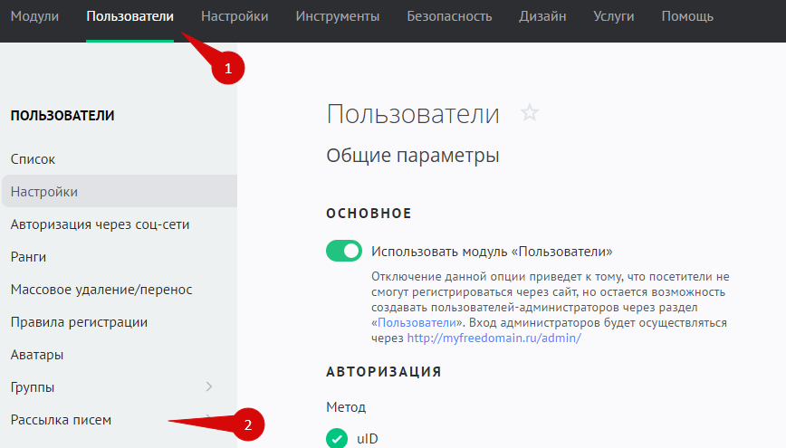 Включение подписки выполняется на странице Панель управления — Пользователи — Настройки: