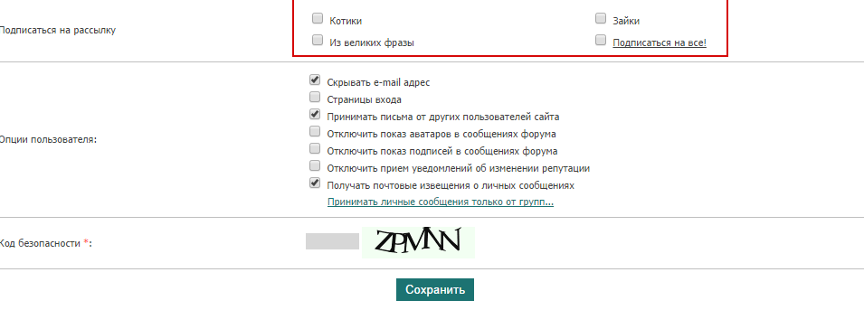 После включения подписки необходимо создать хотя бы одну категорию рассылки. Категория должна иметь название, которое четко обозначит тематику сообщений. Это важно, потому что название категории будут видеть пользователи на странице регистрации и при редактировании личных данных: